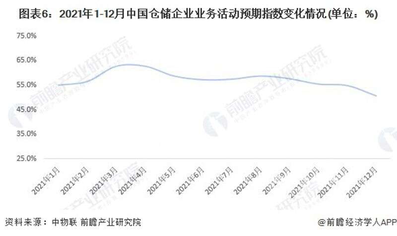從中物聯(lián)發(fā)布的中國倉儲指數(shù)中的新訂單指數(shù)變化情況來看,2021年2-12月中國倉儲業(yè)新訂單指數(shù)均值為51.8%,同比下降0.4個百分點;顯示出倉儲行業(yè)受新冠疫情、全球經(jīng)濟(jì)下行等因素影響導(dǎo)致行業(yè)需求整體趨弱。