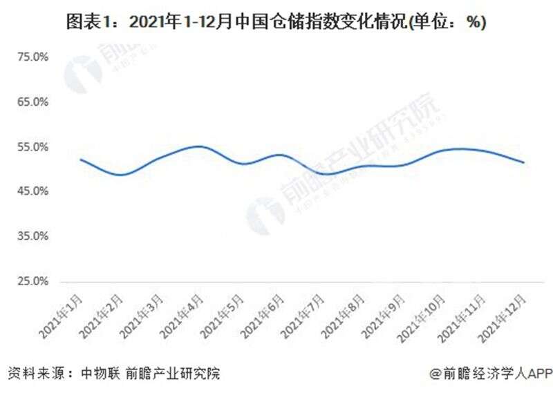 根據(jù)中國物流與采購聯(lián)合數(shù)據(jù),2021年1-12月,中國倉儲業(yè)期末庫存指數(shù)均值為52.9%,保持在榮枯線以上,同比增長2.2個百分點,反映出庫存水平明顯上升,企業(yè)庫存壓力所有上升。